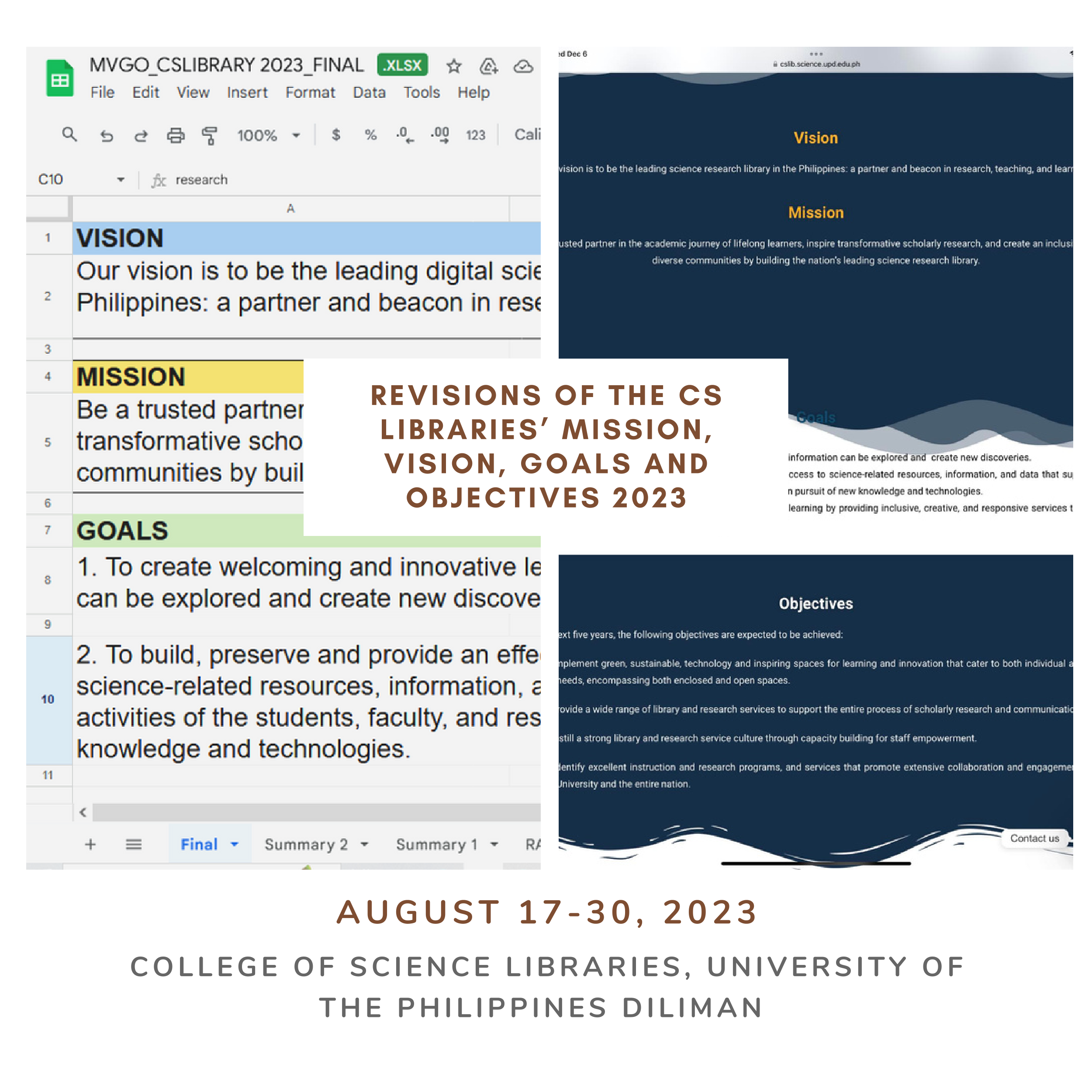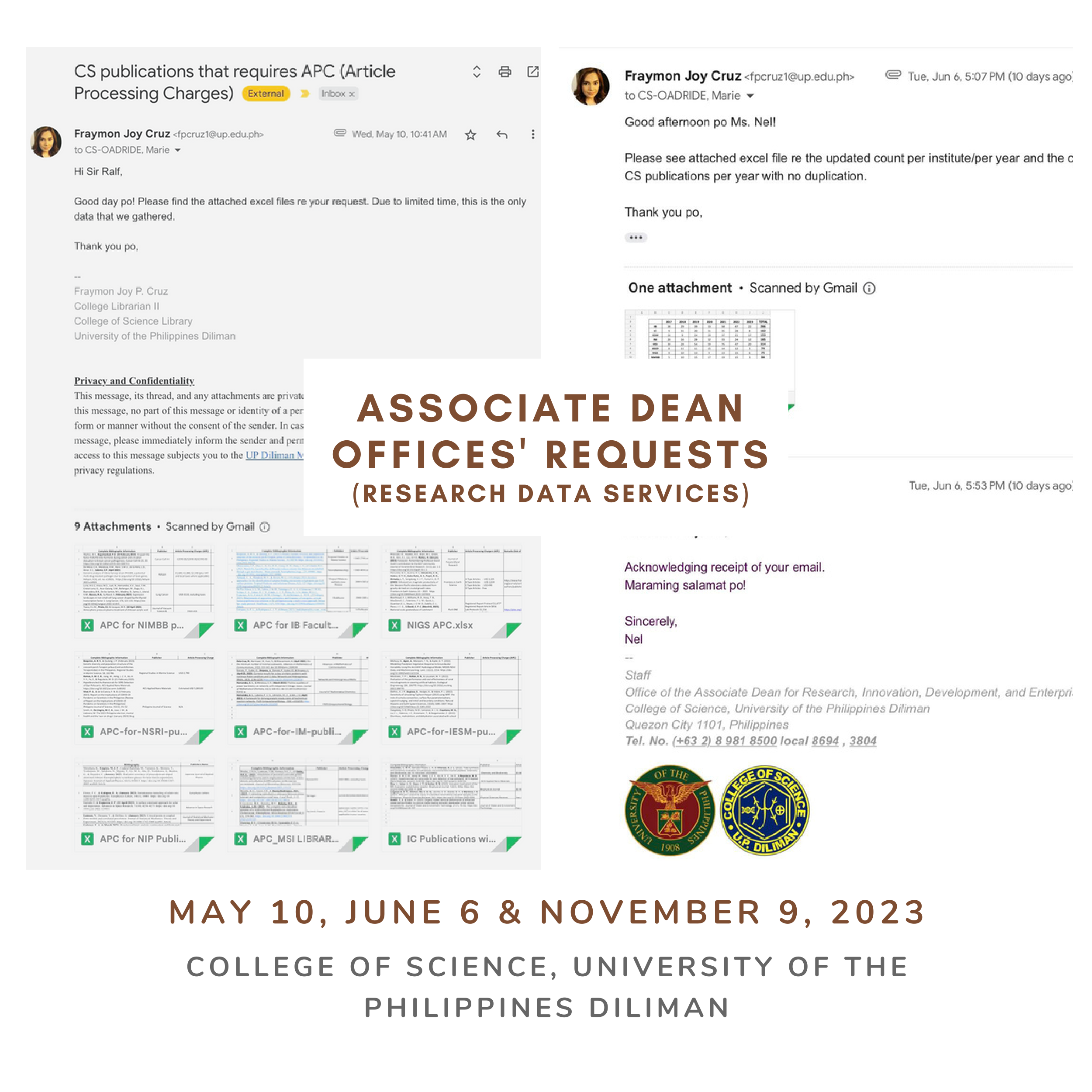 The College of Science Libraries team has consistently demonstrated steadfast dedication to ensuring uninterrupted service provision across both our physical and digital spaces. Over time, we have continuously improved and refined our processes and service offerings that fosters stronger ties with the faculty members, students and researchers in general. While our journey has been marked by significant challenges resulting from constrained human and financial resources, our determination has prevailed, leading to noteworthy accomplishments in the CY 2023: