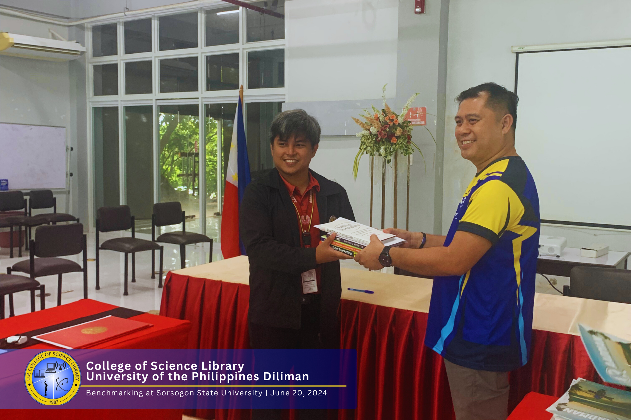 A highlight of the visit was the signing of a Memorandum of Understanding (MOU) between the University of the Philippines College of Science Library and Sorsogon State University, symbolizing a commitment to continued collaboration, shared learning, and joint initiatives in library development. The gesture was further deepened by a ceremonial book donation, embodying the spirit of knowledge-sharing and goodwill.