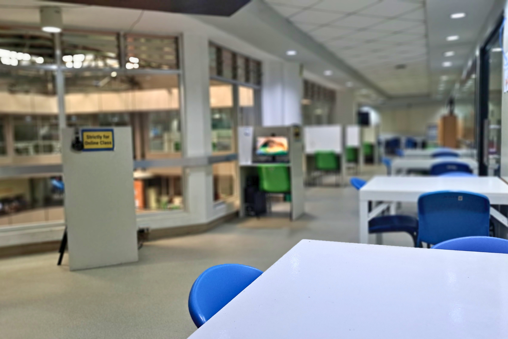 Group Reading Area - Located in the second-floor lobby. This part is appropriate for group study, collaborations, group projects, and individual research. The use of power is allowed, as are spill-proof drinks. The maximum allowable capacity is 50 people.